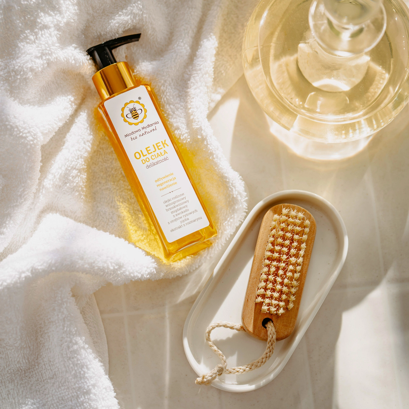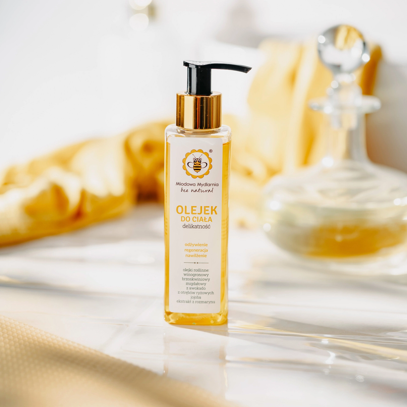 Składniki: olej z pestek winogron, olej brzoskwiniowy, olej ze słodkich migdałów, olej z awokado, olej ryżowy, olej jojoba, olejek zapachowy, ekstrakt z rozmarynu w oleju słonecznikowym