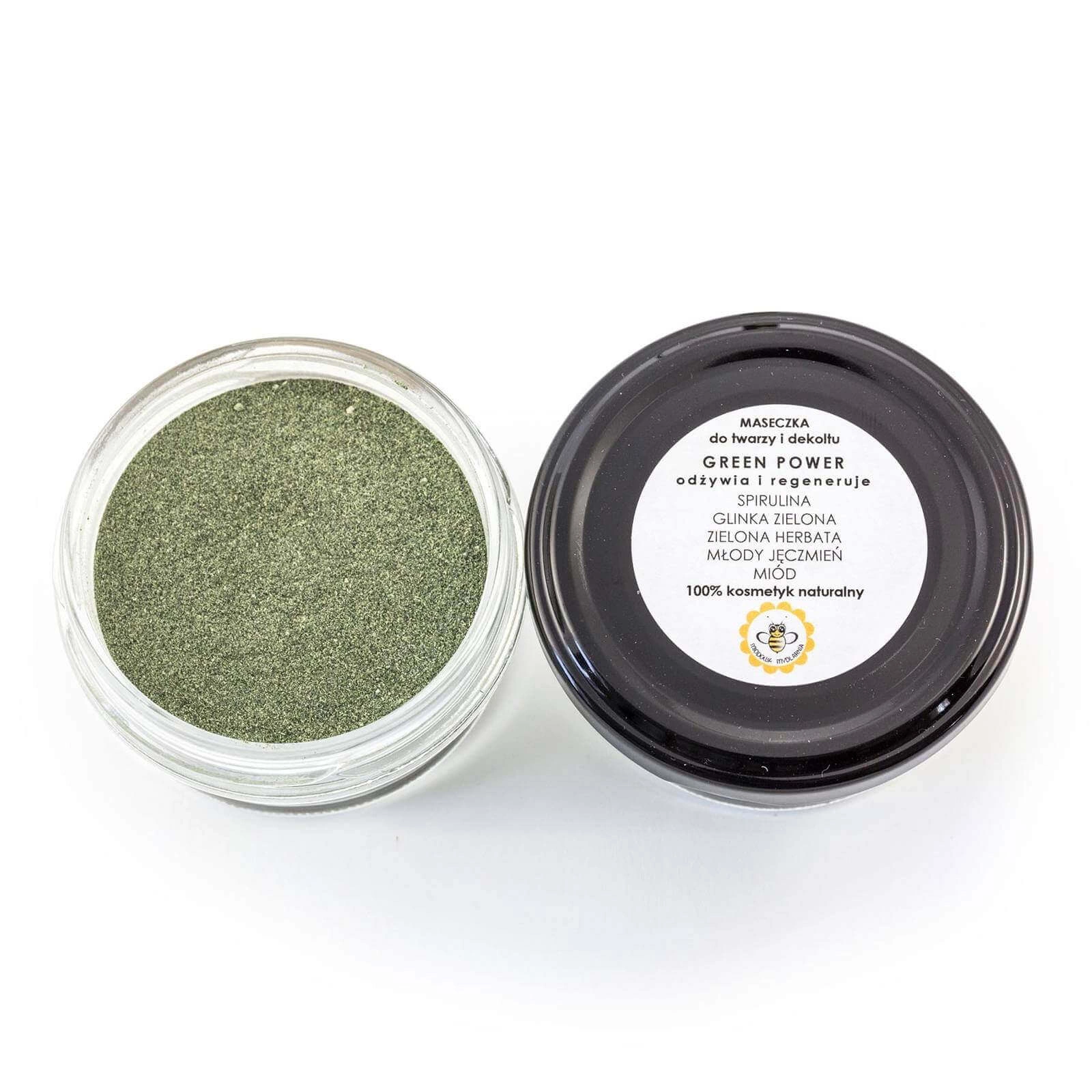 spirulina, zielona glinka, miód w proszku, młody jęczmień, ekstrakt z zielonej herbaty