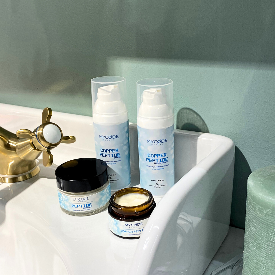 Tripeptyd miedziowy naturalnie występuje w ludzkim osoczu, jednak wraz z upływem czasu jego stężenie spada, co może przyczyniać się do utraty jędrności skóry. Czyste peptydy miedziowe będące wiodącym składnikiem przeciwzmarszczkowym serum aktywnie stymulują syntezę elastyny, kolagenu i glikozaminoglikanów, w tym kwasu hialuronowego. To rodzaj peptydów transportujących, które są kofaktorami reakcji biochemicznych zachodzących w naskórku. Stymuluje fibroblasty skóry do produkcji kolagenu, elastyny oraz innych białek skóry właściwej. Wpływają na wszystkie oznaki starzenia się skóry, sprawiając, że jest ona bardziej jędrna i elastyczna. Zagęszczają naskórek, poprawiając jego strukturę i poziom sprężystości, co skutkuje zmniejszeniem głębokości i długości zmarszczek. Skóra dzięki temu wygląda na jędrniejszą, bardziej wygładzoną i pełniejszą.