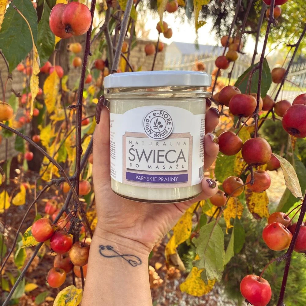 Estetyczny, subtelny wygląd świecy idealnie współgra z zawartością: aromatyczny wosk z pewnością dostarczy wielu doznań, nie tylko dotykowych, ale i zapachowych. To jedno z najciekawszych doświadczeń, które naprawdę warto poznać. Ta niepozorna świeca może pozytywnie Cię zaskoczyć, a masaż ukoi Twoje skołatane nerwy, wyciszy i zrelaksuje.