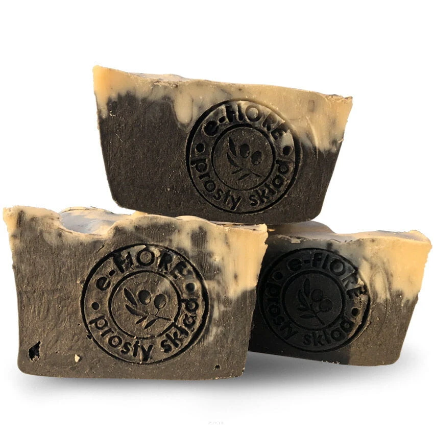 Węgiel aktywny - produkt leczniczy, wytwarzany jest z miazgi drzewnej przy temperaturze blisko 900 stopni Celsjusza. Ma działanie antyspetyczne, odświeżające skórę, likwiduje zaskórniki, wspomaga leczenie trądziku. Węgiel redukuje sebum, wspomaga leczenie łupieżu, nadaje mydłu czarny kolor.