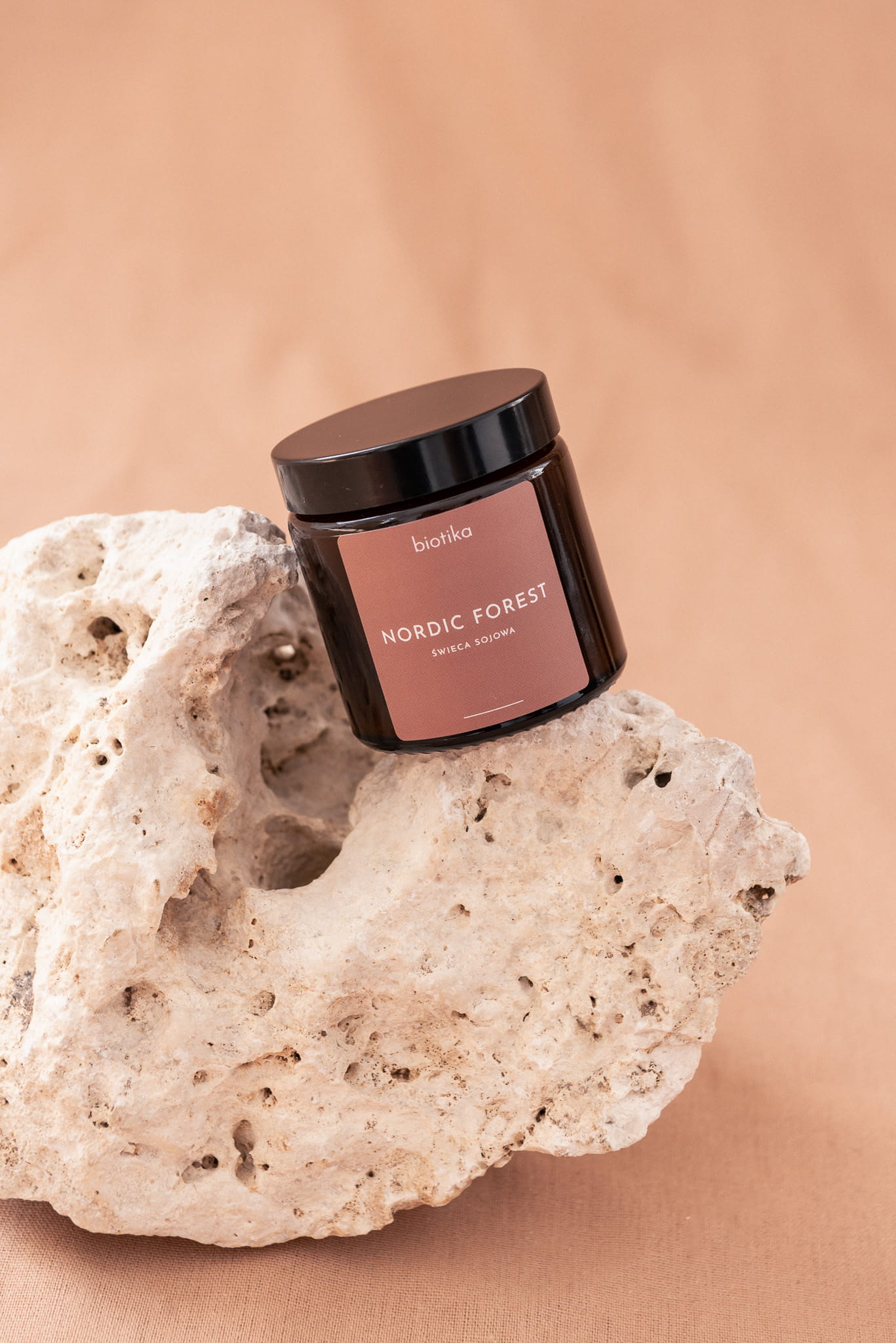 Świeca z wosku sojowego Nordic forest to kompozycja kojarząca się ze spacerem po lesie, zapachem drzew i mchu.