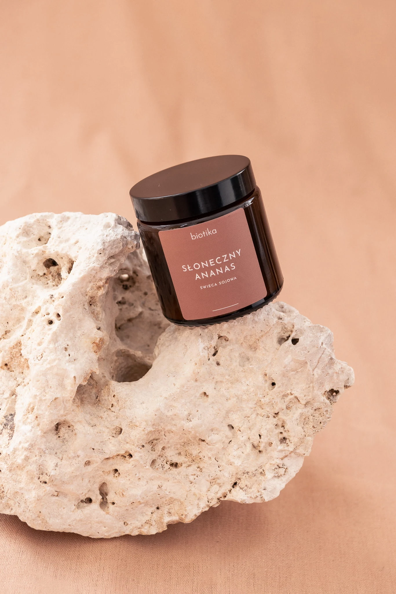 Świeca z wosku sojowego o zapachu Słoneczny ananas to idealny prezent dla fanów letnich nut zapachowych. Przygotowana jest na bazie ekologicznego wosku.