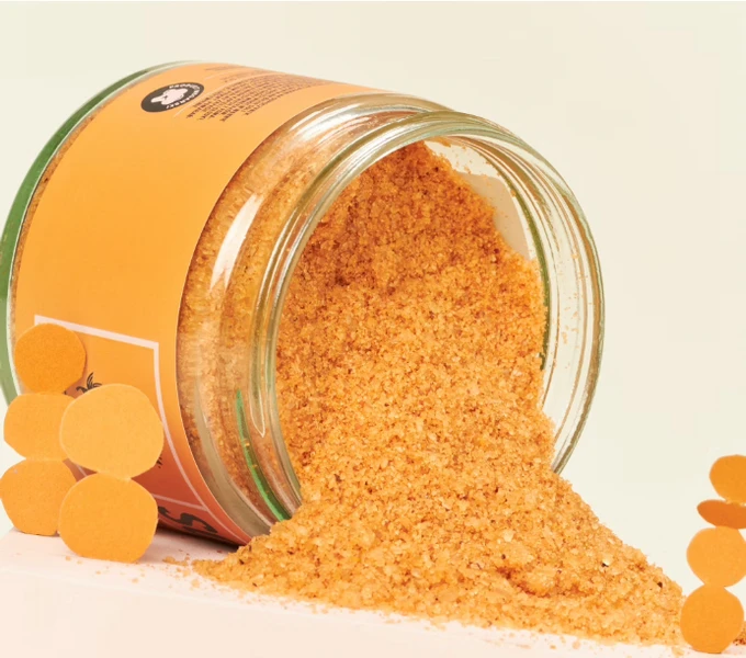 Piękny, pomarańczowy kolor soli pochodzi od łagodzącej czerwonej glinki i rokitnika - istnej bomby witaminowej.