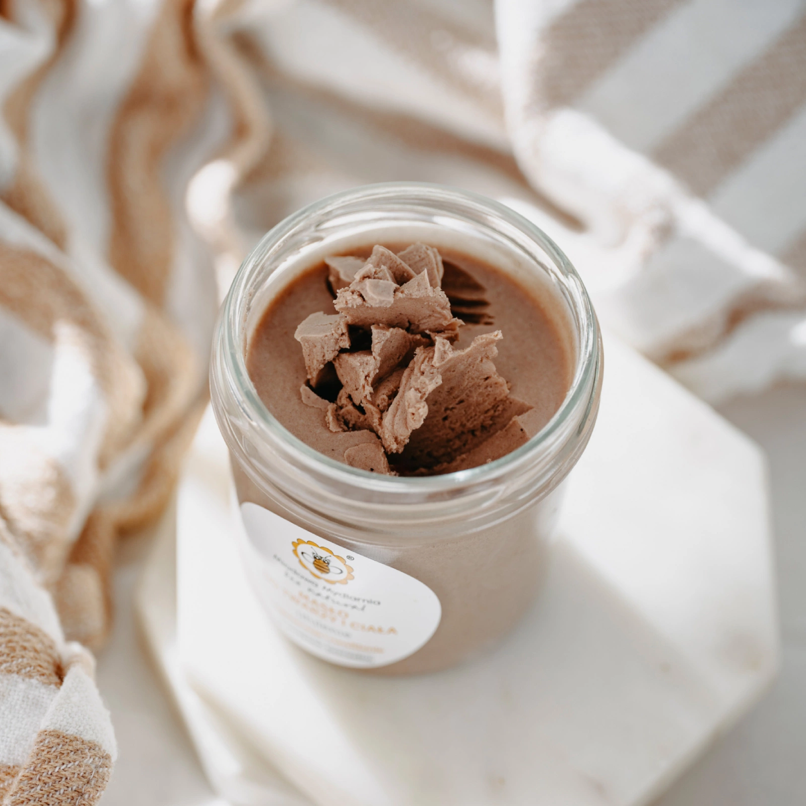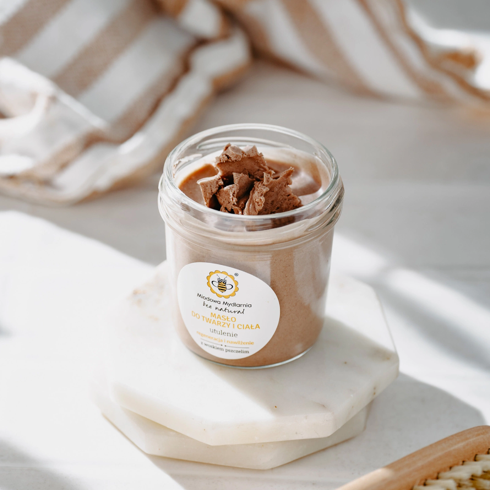 Naturalne masło z woskiem pszczelim i masłem kakaowym tworzy wyjątkowo puszystą teksturę, która szybko się wchłania, nie pozostawiając tłustej warstwy. Skóra pozostaje gładka i miękka przez długi czas.