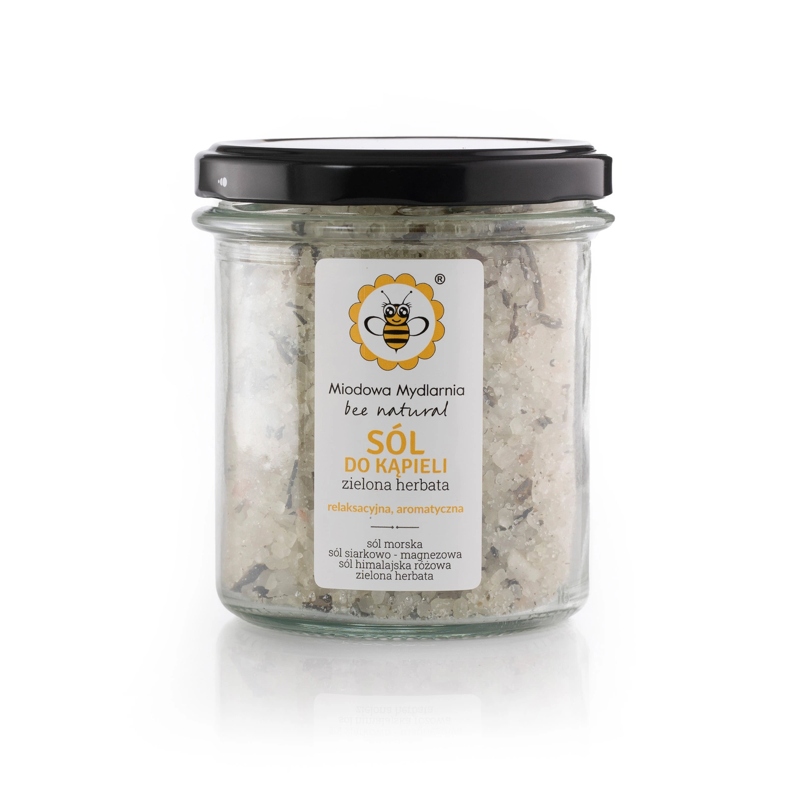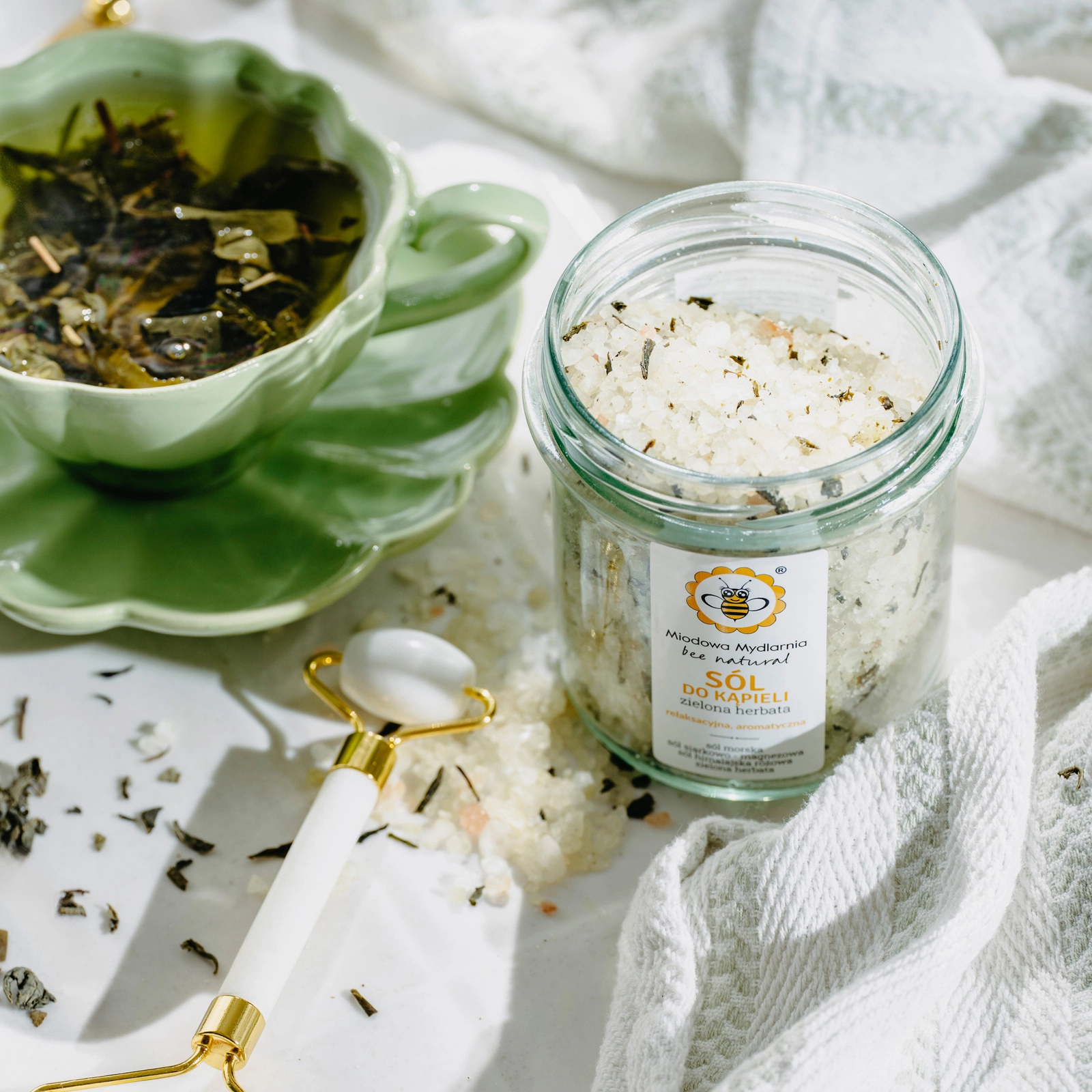 Relaksacyjna, odprężająca sól do kąpieli ZIELONA HERBATA to mieszanka soli morskiej, soli angielskiej – siarkowo-magnezowej (zwanej Epsom) i różowej soli himalajskiej. Jest bogata w cenne minerały i pierwiastki śladowe – niezbędne dla skóry i całego organizmu.